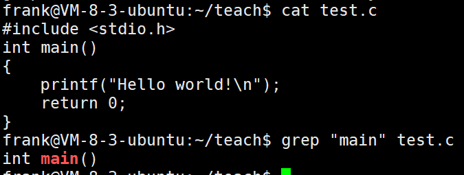 例如:搜文本的main,搜到就打印出来