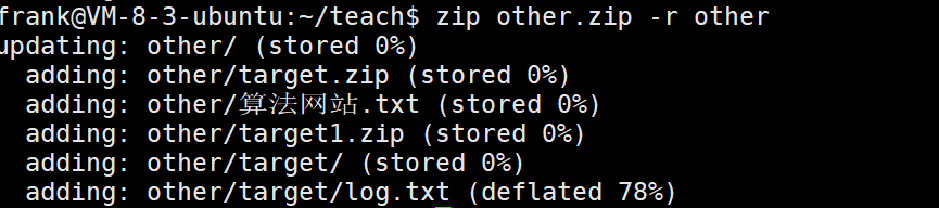 将other⽬录压缩:zip other.zip other,这样子普通压缩目录里面是不会带任何文件的