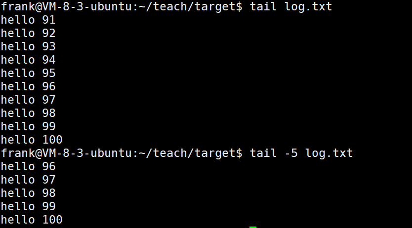 head与tail就像它的名字⼀样的浅显易懂,它是⽤来显⽰开头或结尾某个数量的⽂字区块,head⽤ 来显⽰档案的开头⾄标准输出中,⽽tail想当然尔就是看档案的结尾。
