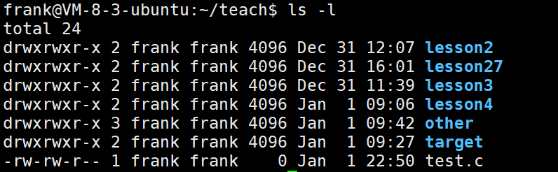 ls -l :l列出⽂件的详细信息