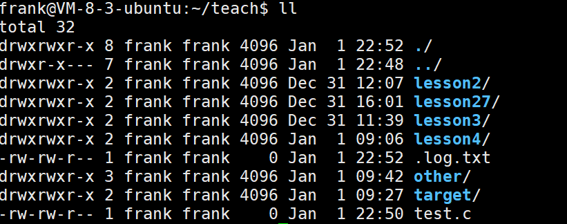 2、指令 ll -> 查看隐藏文件和他的详细信息