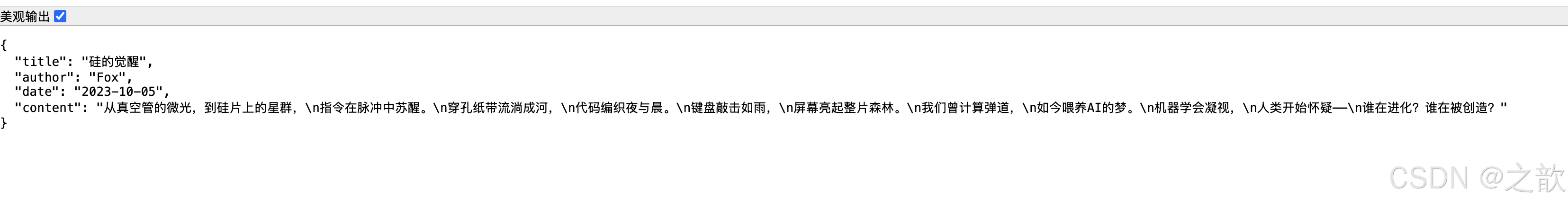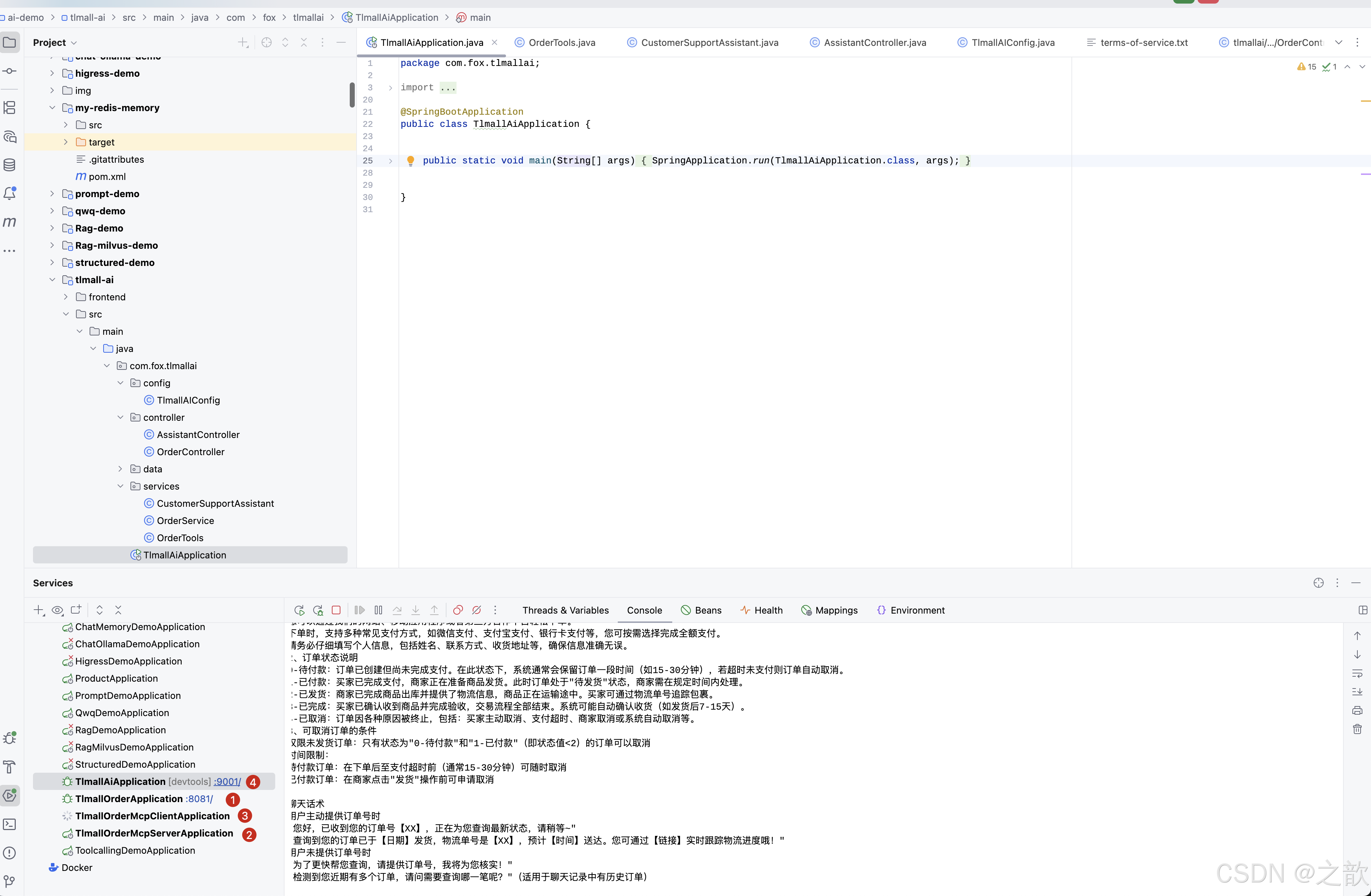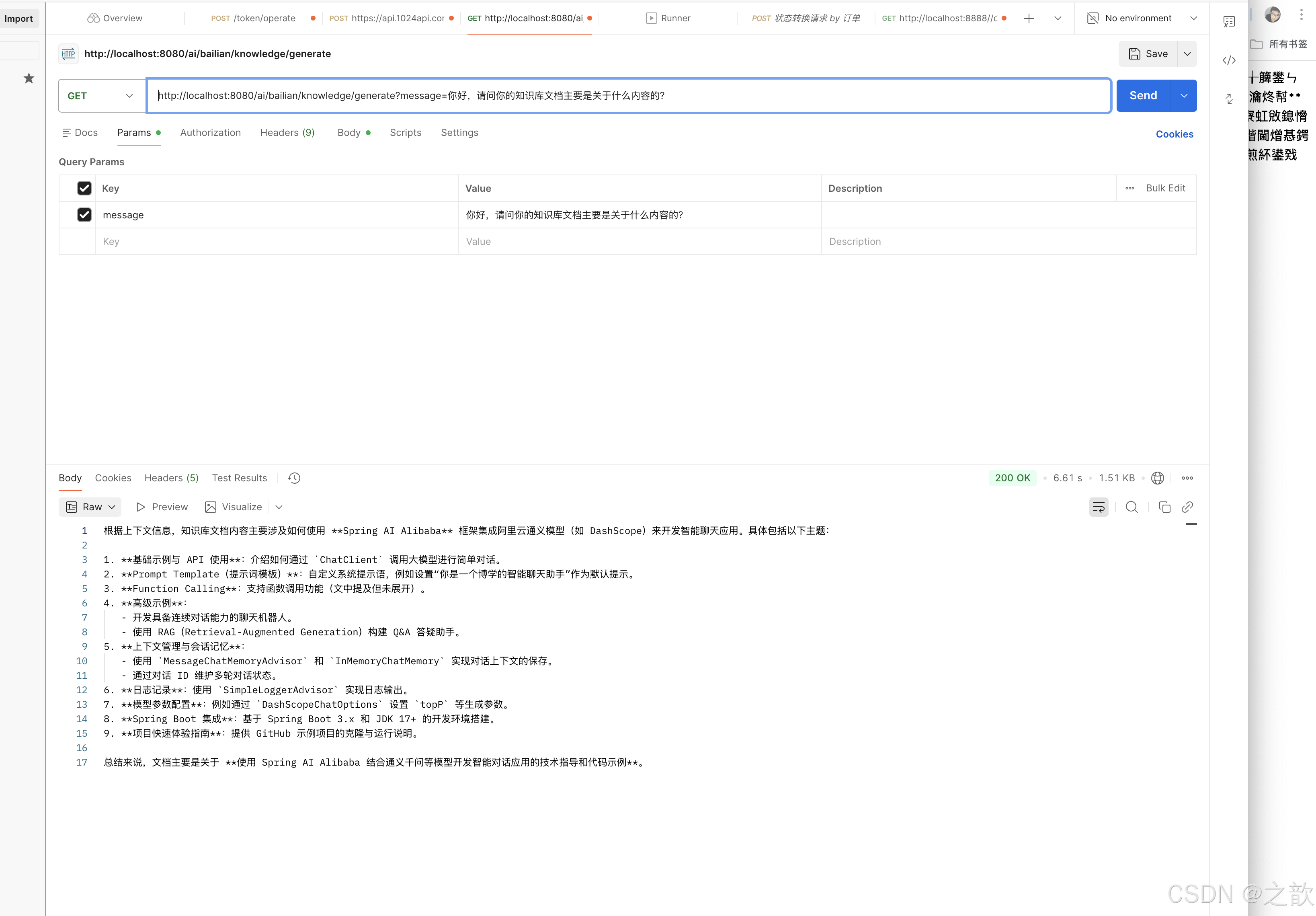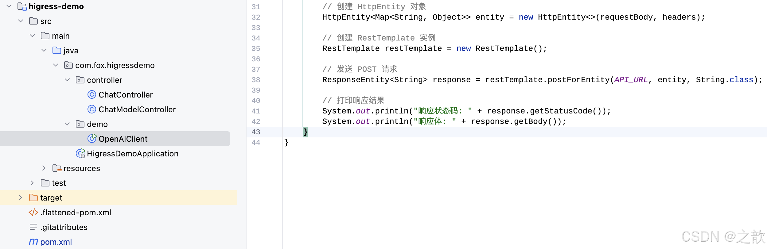 在这个示例中,首先设置了用户消息的内容,call 方法向 AI 模型发送请求,content 方法以字符串形式返回 AI 模型的响应。
