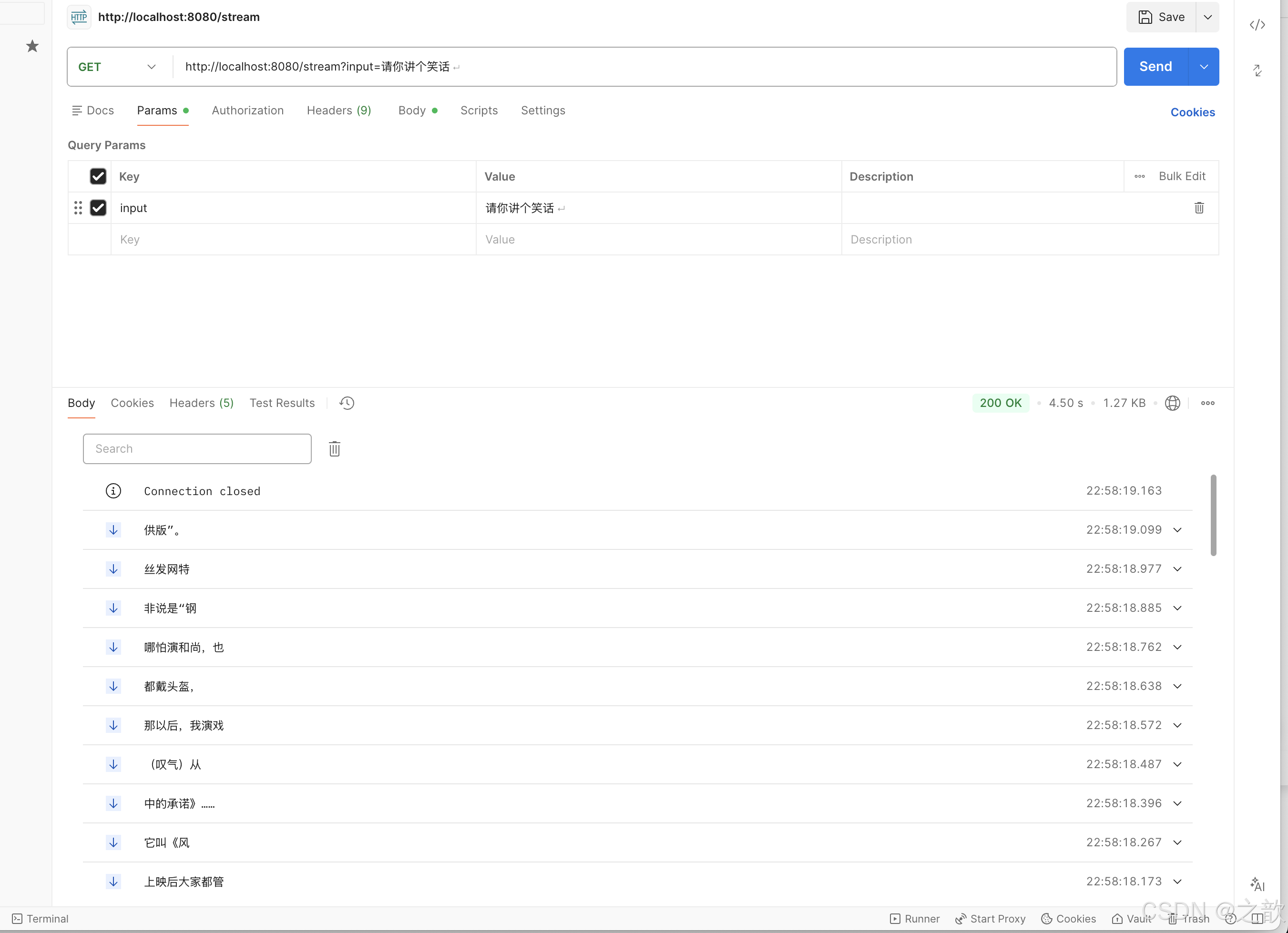 相比于上面的 Flux,您还可以使用 Flux chatResponse() 方法获得 ChatResponse 响应数据流。