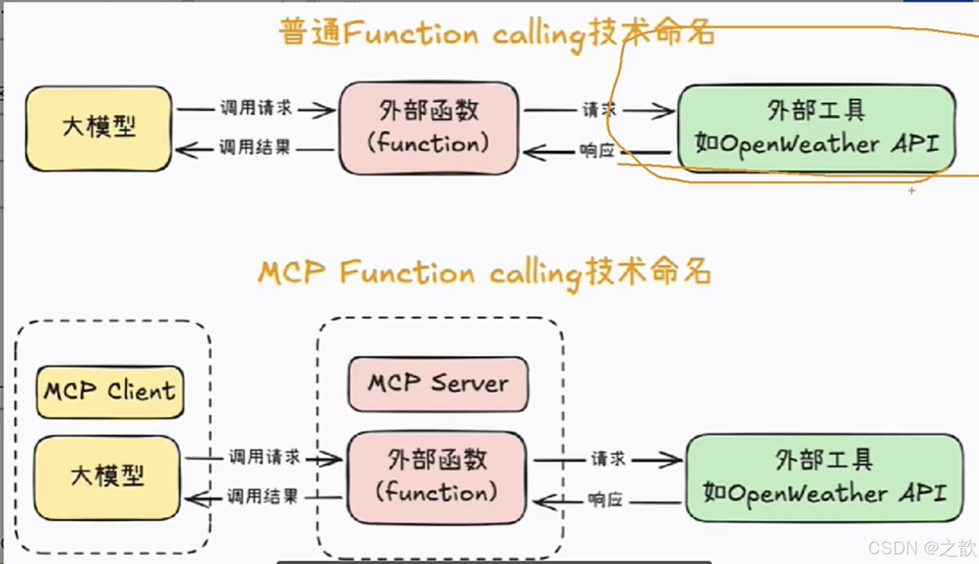 - 远程服务:MCP 服务器可以通过互联网(例如,通过 API)连接到的外部系统