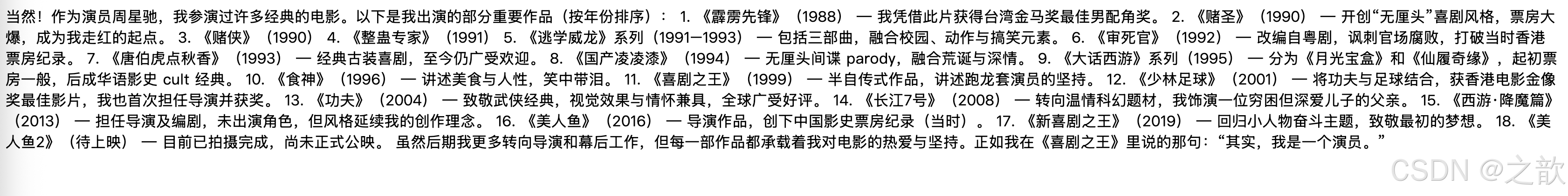 .defaultSystem("你是一个演员,请列出你所参演的电影")