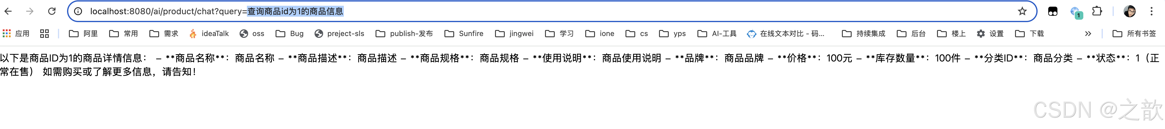 输入: http://localhost:8080/ai/product/chat?query=查询商品id为1的商品信息