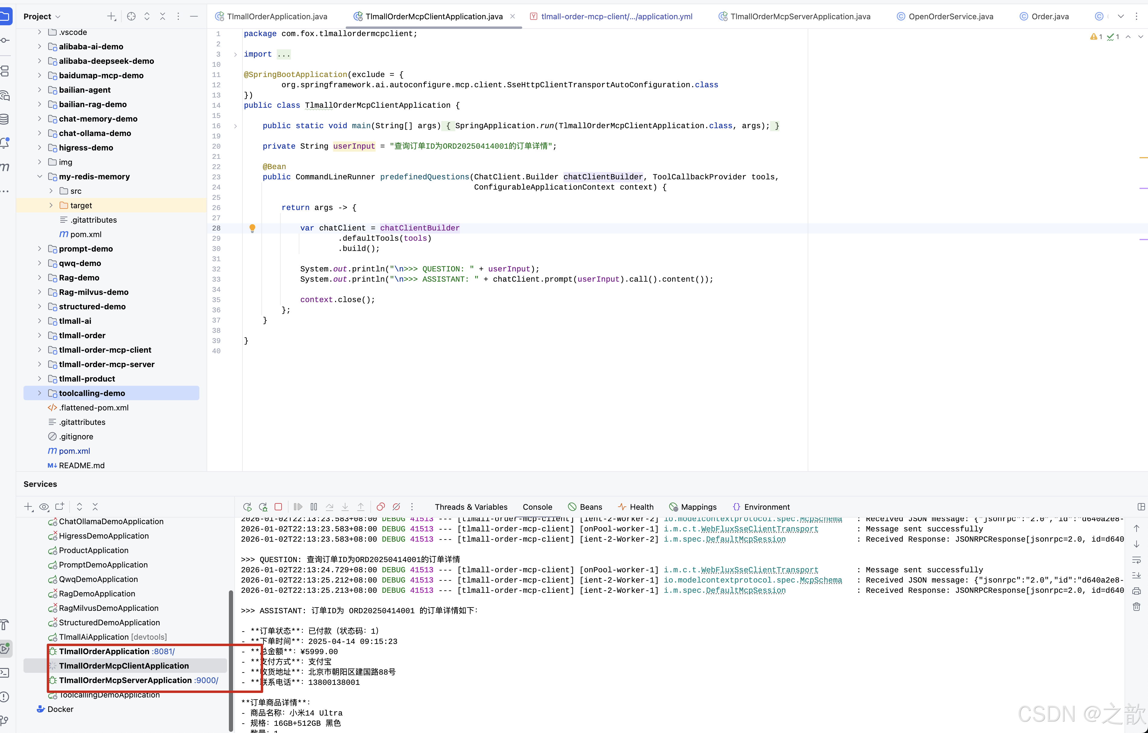 - Spring AI 应用程序:使用 Spring AI 框架构建想要通过 MCP 访问数据的生成式 AI 应用程序