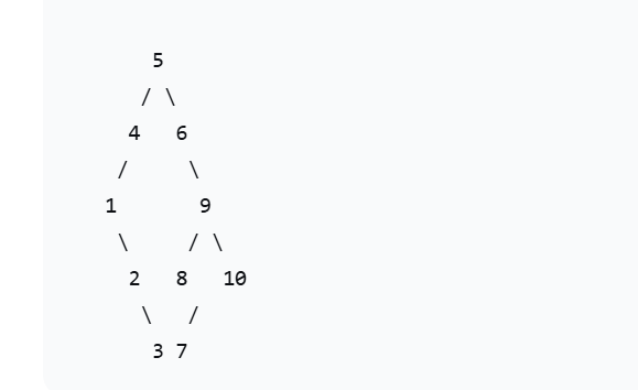 传入 5 6 9 8 7 4 1 2 3 10 构建的二叉排序树图片应该是这样的,中序遍历是这样的,满足有序递增。