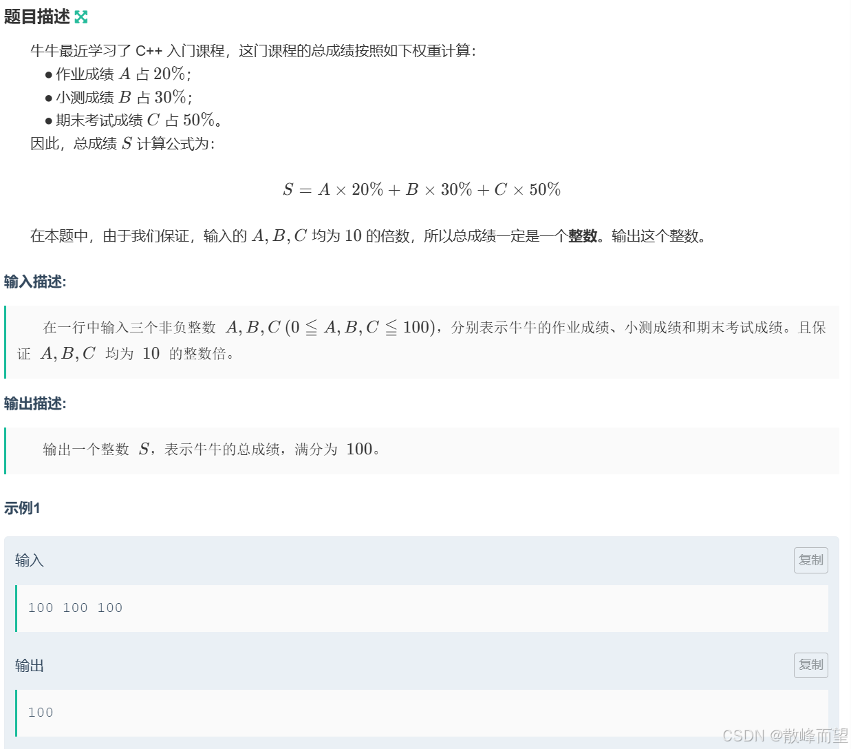 同时还要注意题目要求总成绩一定是整数,需要乘以完各对应成绩的百分比后强转为整型