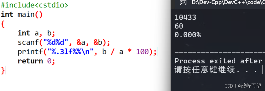 - 百分比不是直接b/a,是需要乘以100.0的,因为需要得到小数,所以要是小数除法