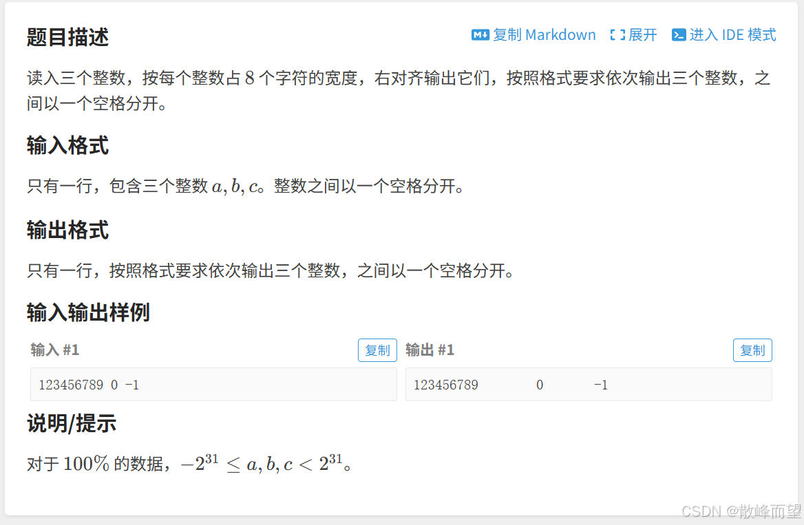 【算法竞赛】C++入门(三)、C++输入输出 -- 习题篇