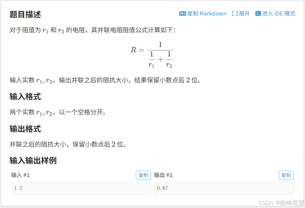 按照题目要求输入输出即可。