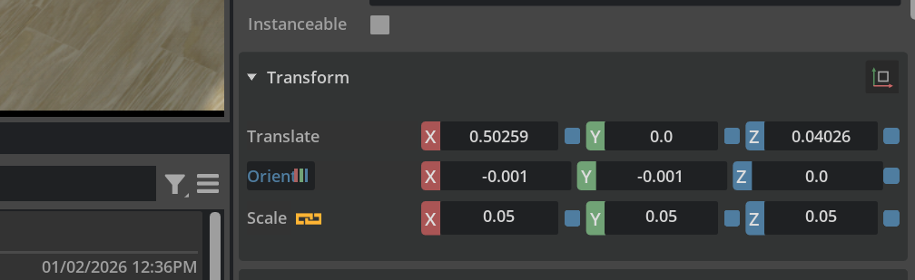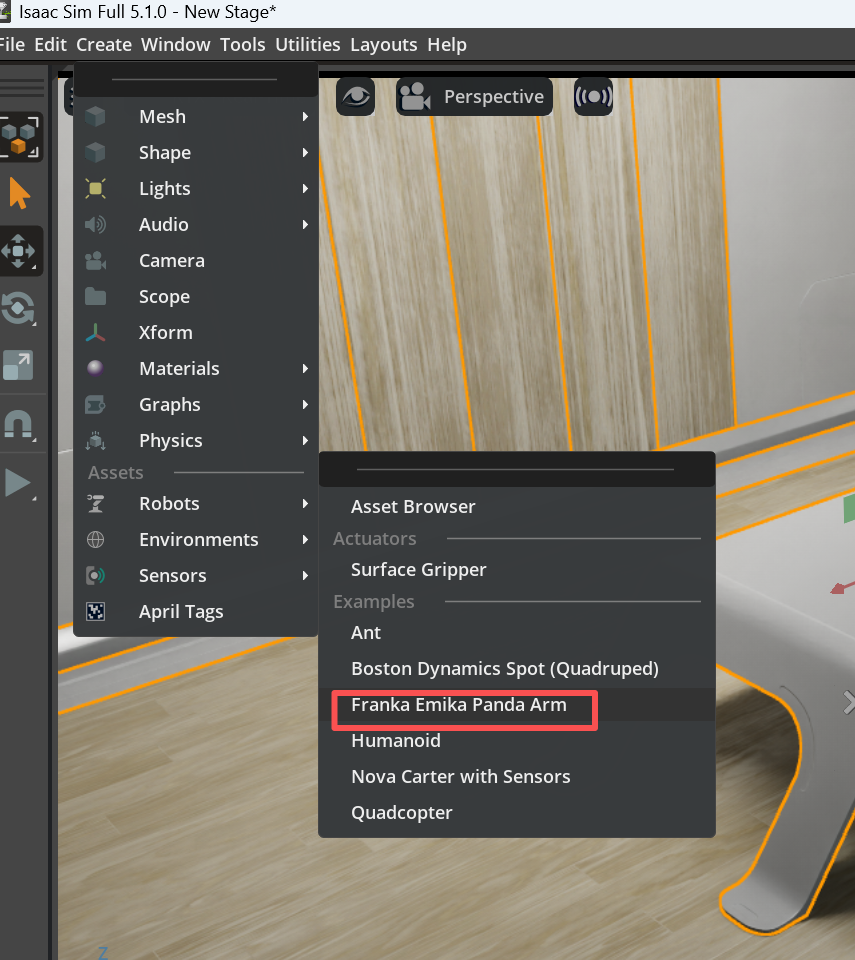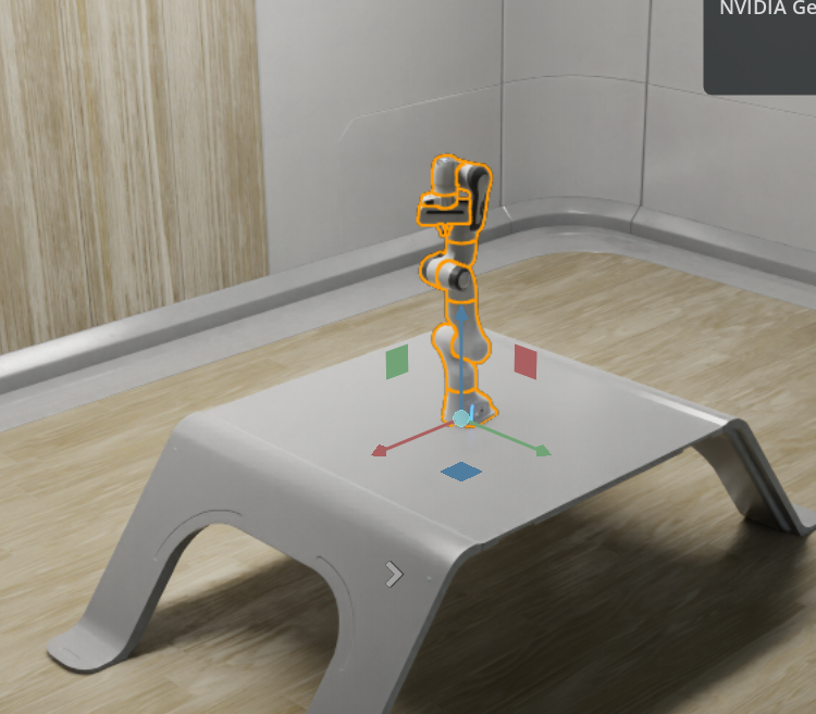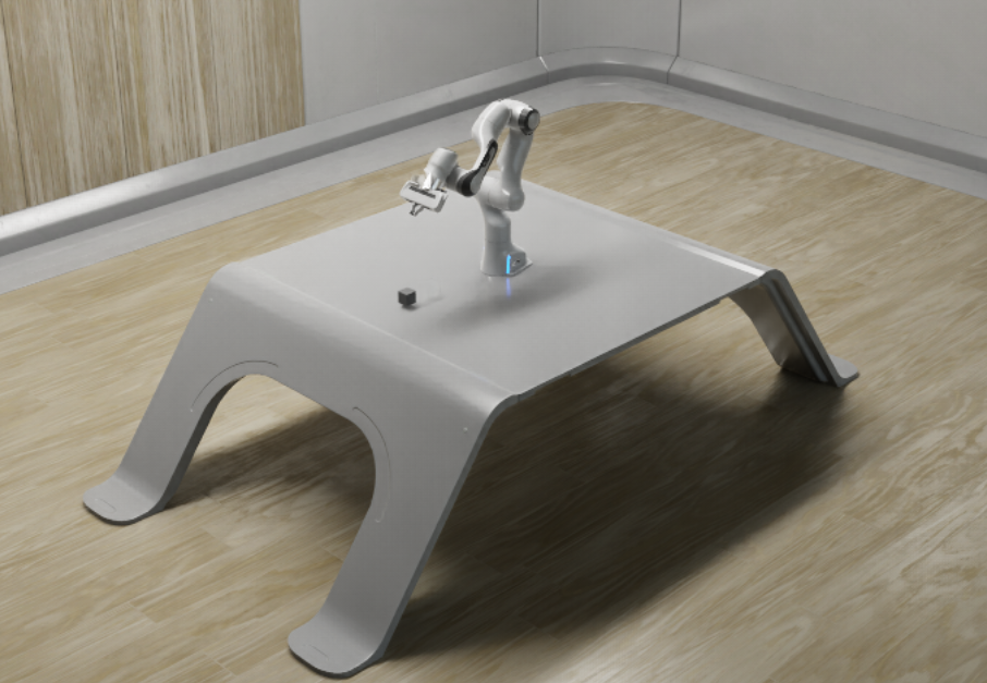 最开始我一直纠结这个机械臂是不是往桌子里穿模了,或者飘到天上了。后来我发现,这个初始位置,就是刚好放在桌面上的。所以机械臂和桌子,就暂时不用动了。