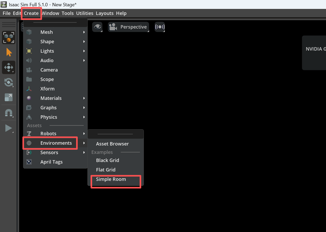 按这个来操作,(创建--》环境--》简单房间)