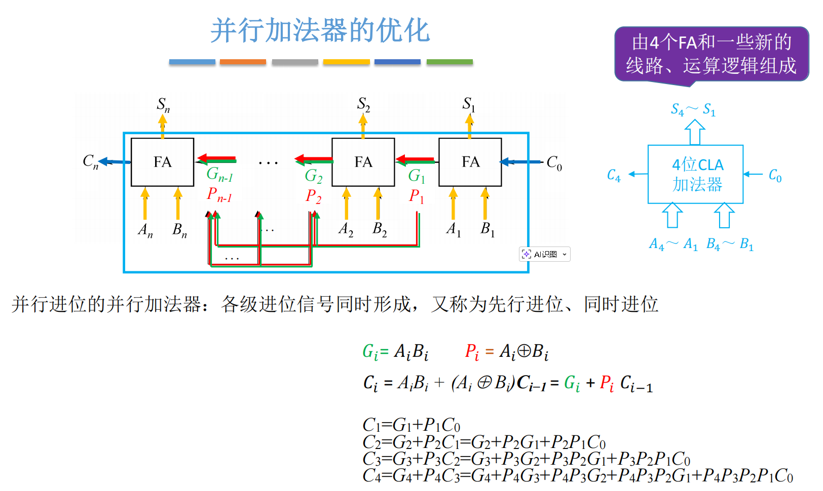 本节我们将深入探讨如何对传统加法器进行优化,引入一种更高效的设计思路:并行进位加法器(Carry Lookahead Adder, CLA)。尽管这部分内容在考试中通常不是重点,但它对于理解现代处理器中高速运算单元的设计思想具有重要意义。即使初次接触时感觉"绕",也请保持耐心------正如古人所言:"心平气和,心如止水",慢慢来,终会豁然开朗。