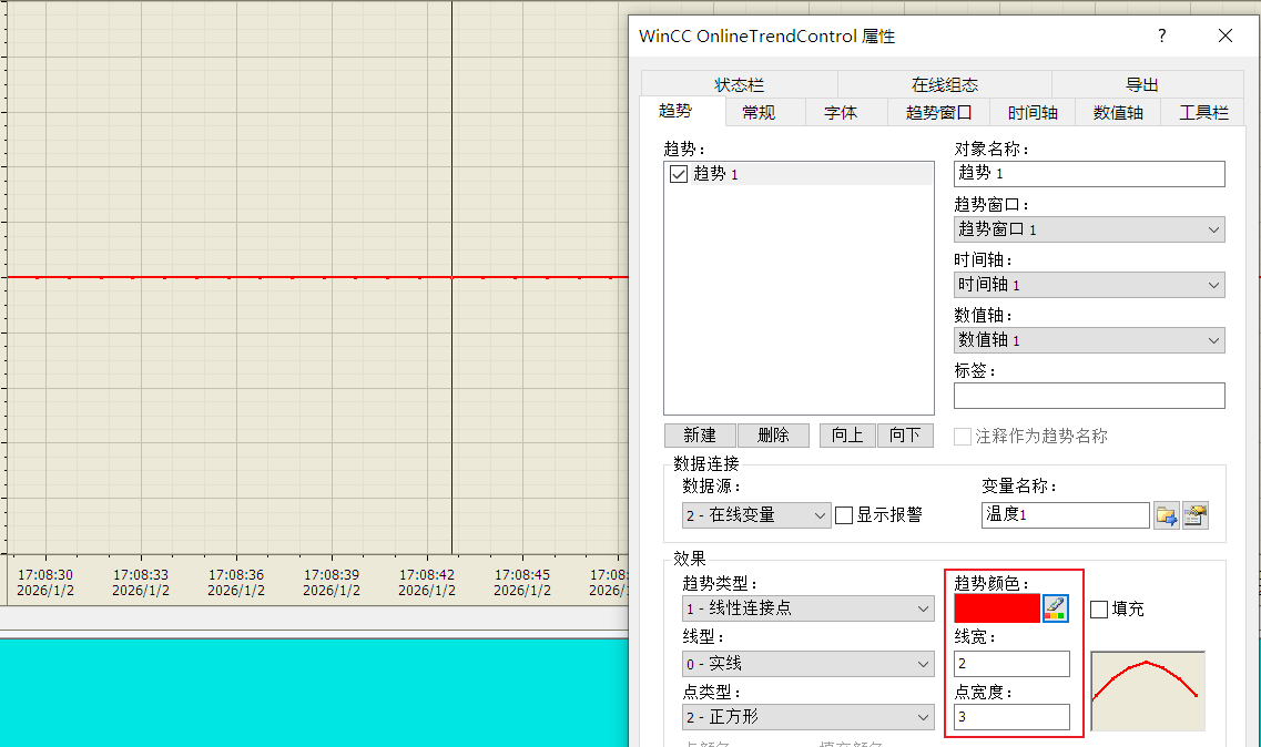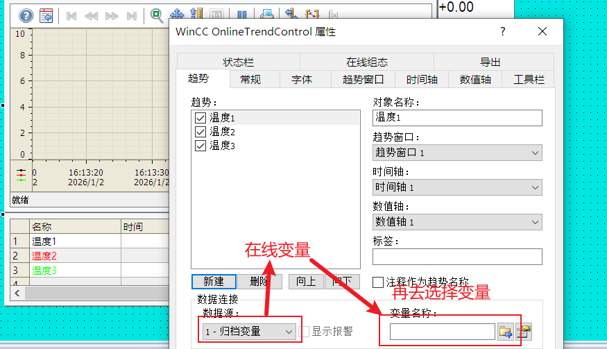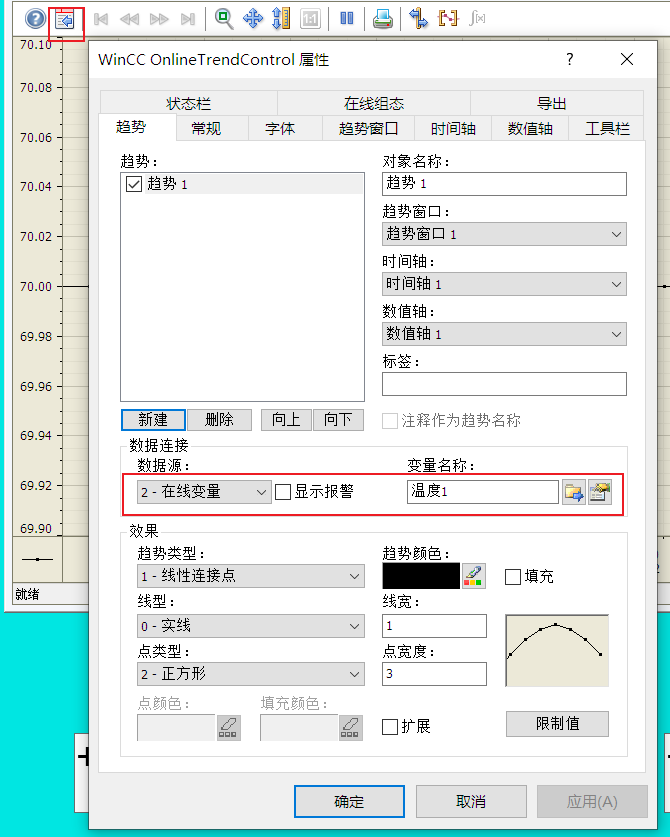 b. 数据源: 实时曲线的数据来源, 【在线变量】