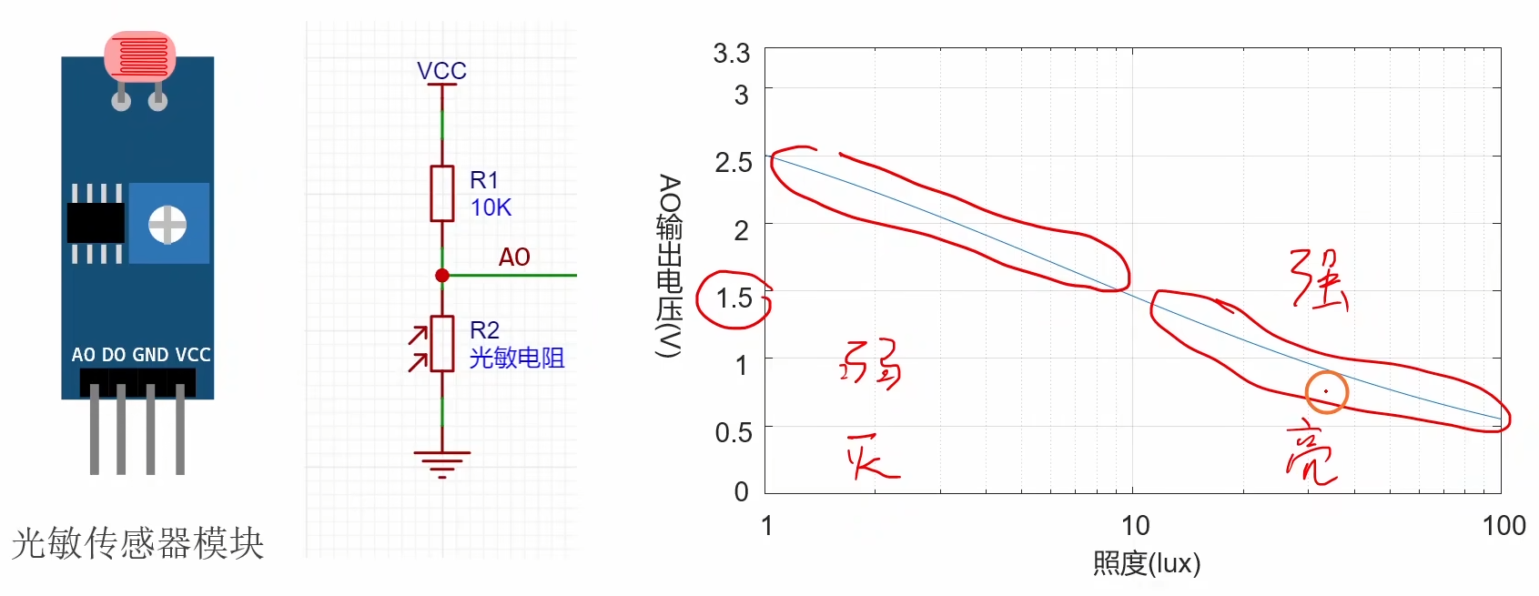 - 输入电压范围:0~3.3V,如果我们要测量大于3.3V的电压,可以通过串联电阻分压的方法来测量,绝对不能直接高于3.3V的电压!