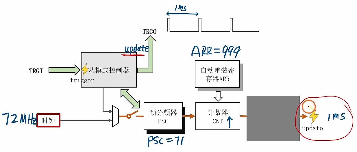 TIM_TimeBaseInitStruct.TIM_Period = 1000-1;//重装载寄存器