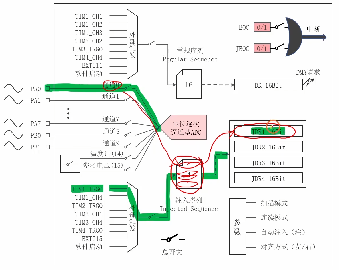简介:ADC1注入序列,定时器触发