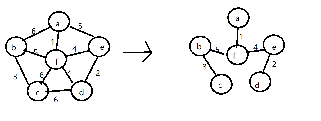 最小生成树一般是针对于无向图的一个操作,现在左边有一个有权图,最小生成树就是在这个有权图中选择一些边来连通所有的点,同时满足边权和最小。