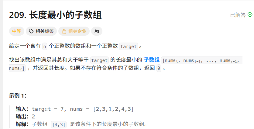 它的目标是:吃够一定的"营养值"(数组元素之和 \\ge target)。