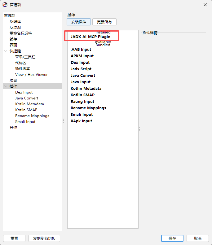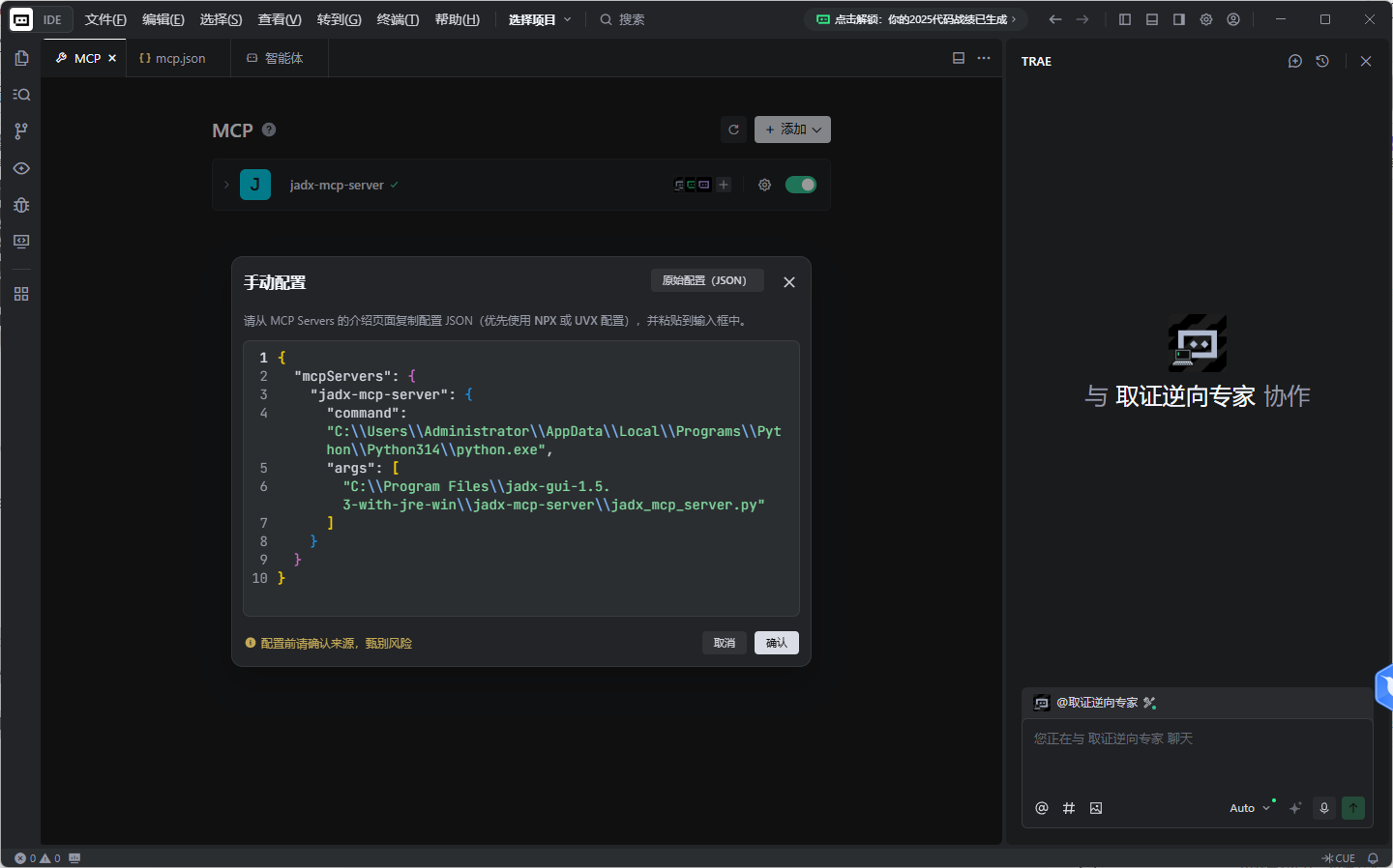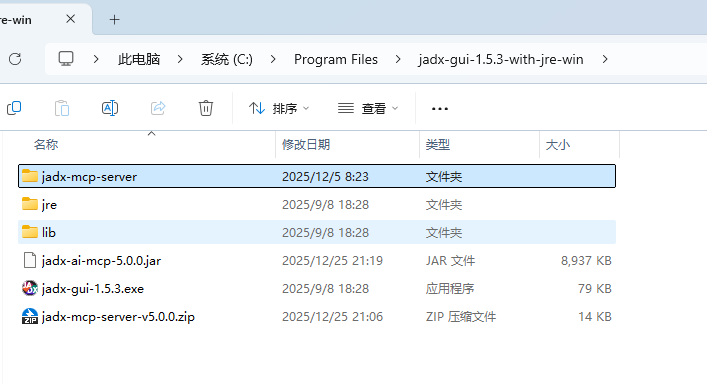 MCP版本:jadx-mcp-server-v5.0.0,下载地址:https://github.com/zinja-coder/jadx-ai-mcp/releases