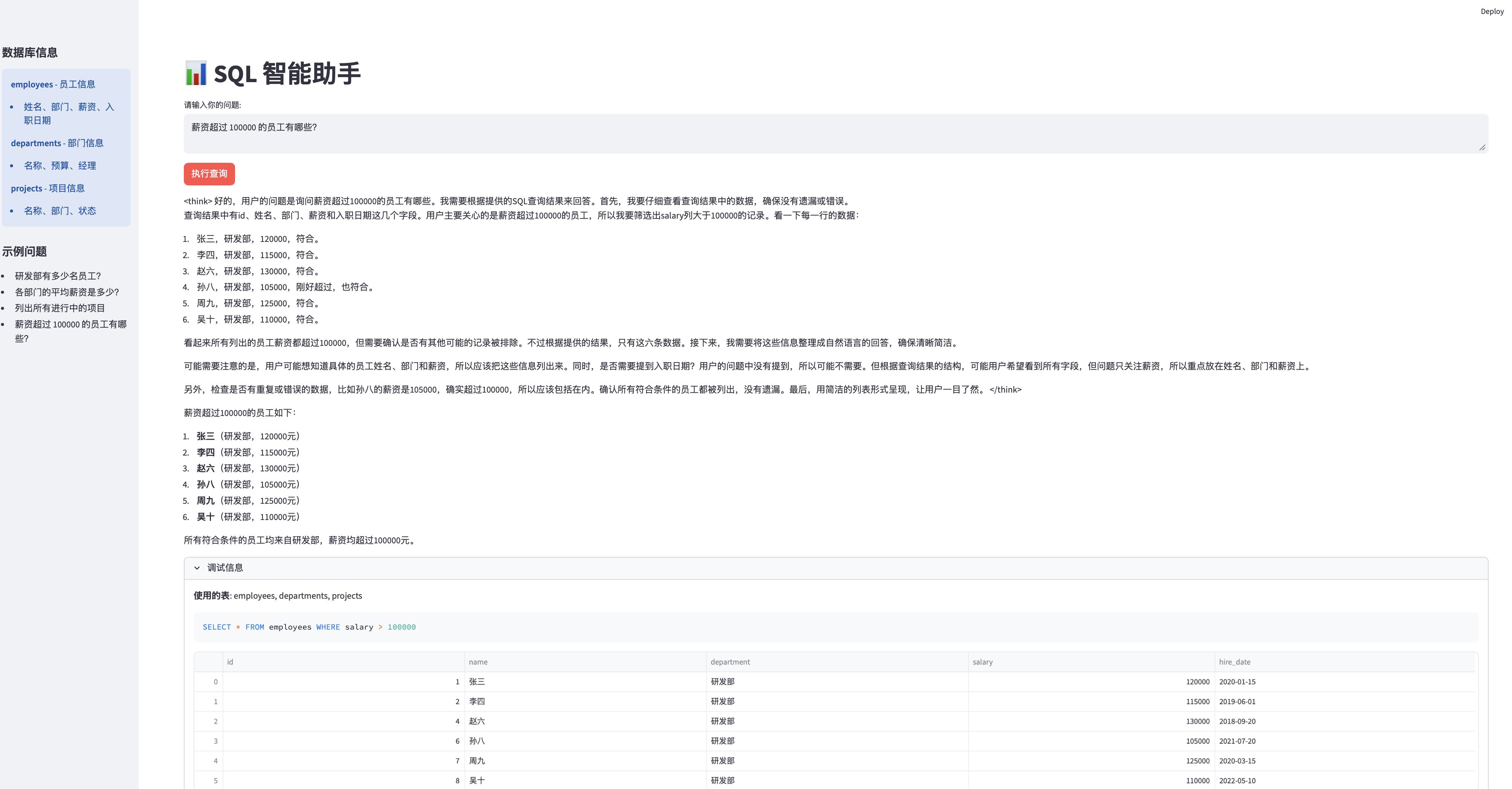 用户问:"Engineering 部门的平均薪资是多少?"但程序返回了错误。