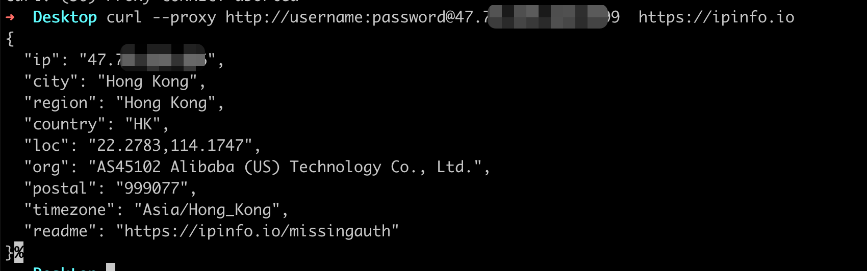 curl -x http://127.0.0.1:8080 https://ipinfo.io