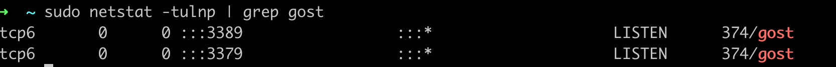 sudo netstat -tulnp | grep gost