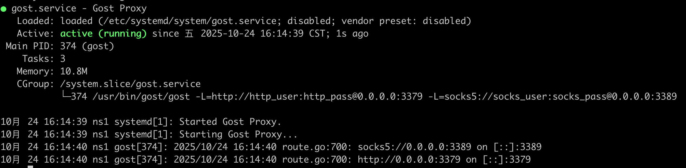 sudo systemctl enable --now gost