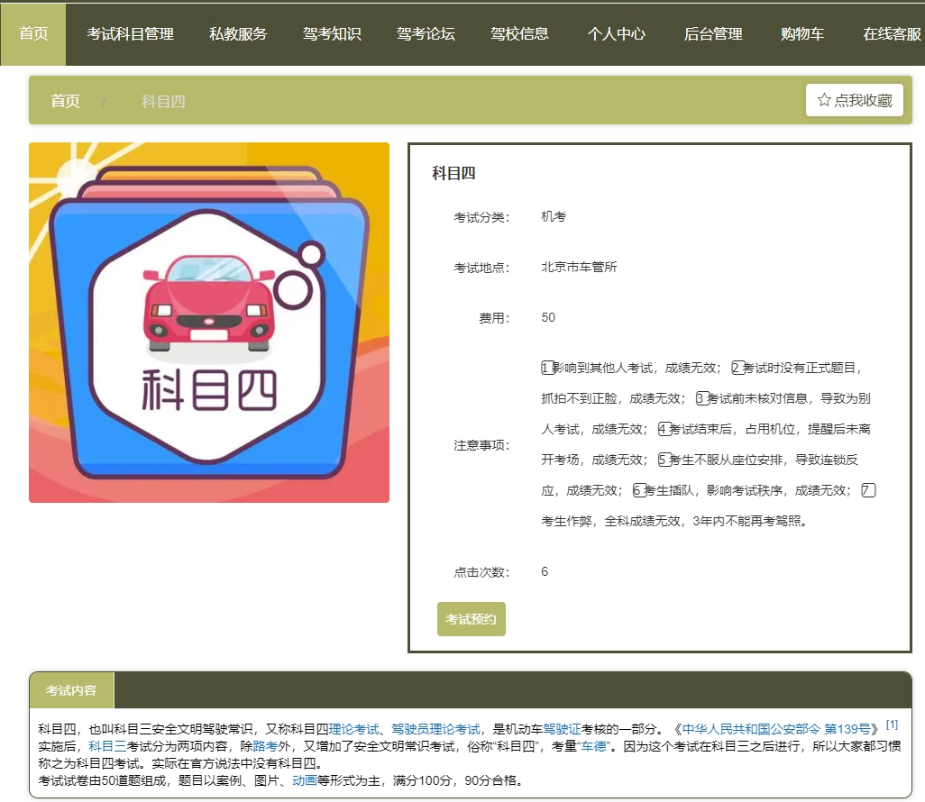 (7)预约项目:用户通过系统在线预约驾考服务项目。