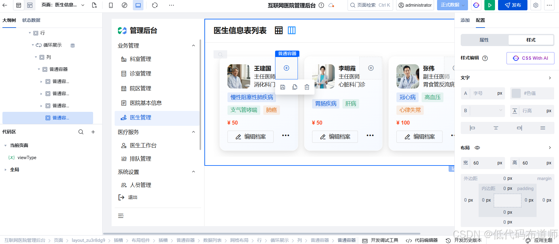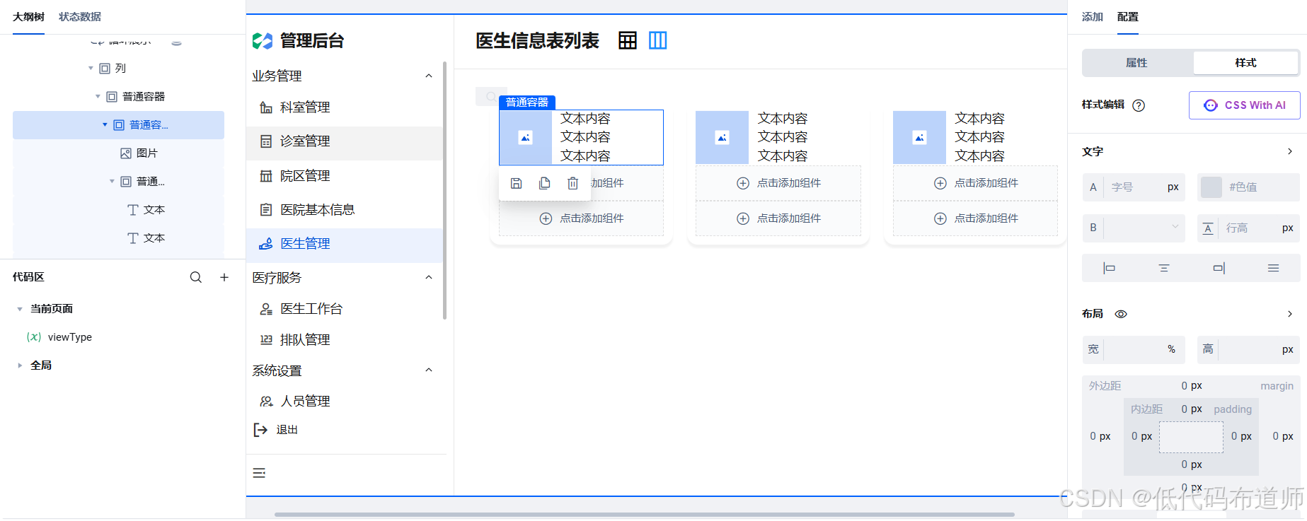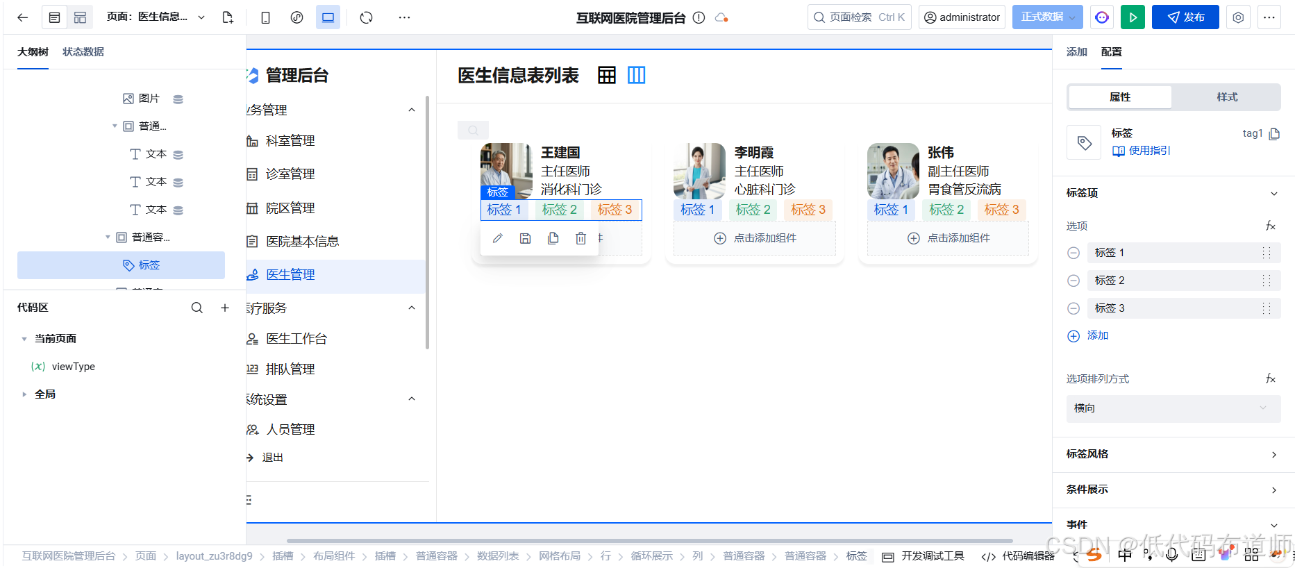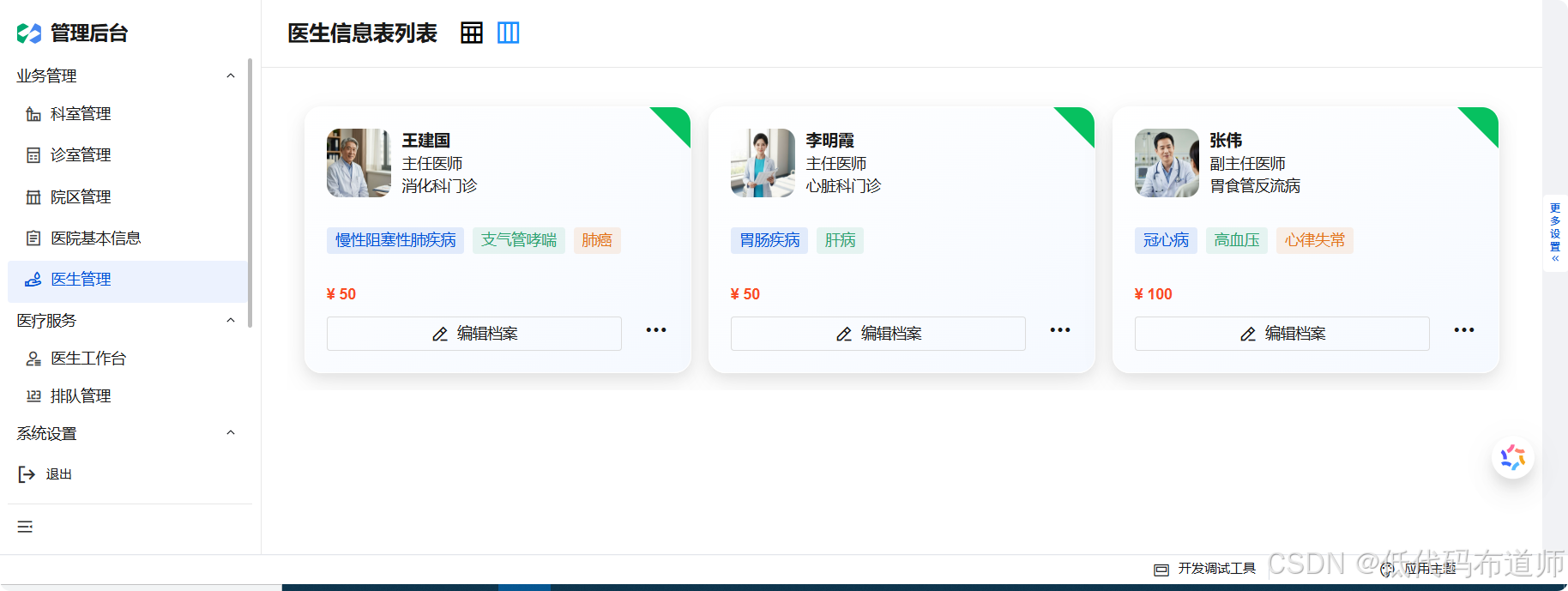 在上一篇中,我们通过一个状态变量实现了"表格视图"与"卡片视图"的无缝切换。表格适合批量查阅,而卡片则更具视觉冲击力,能直观展示医生的形象与状态。