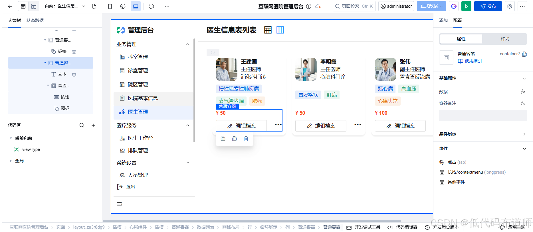 切换到卡片视图,可以看到医生的列表