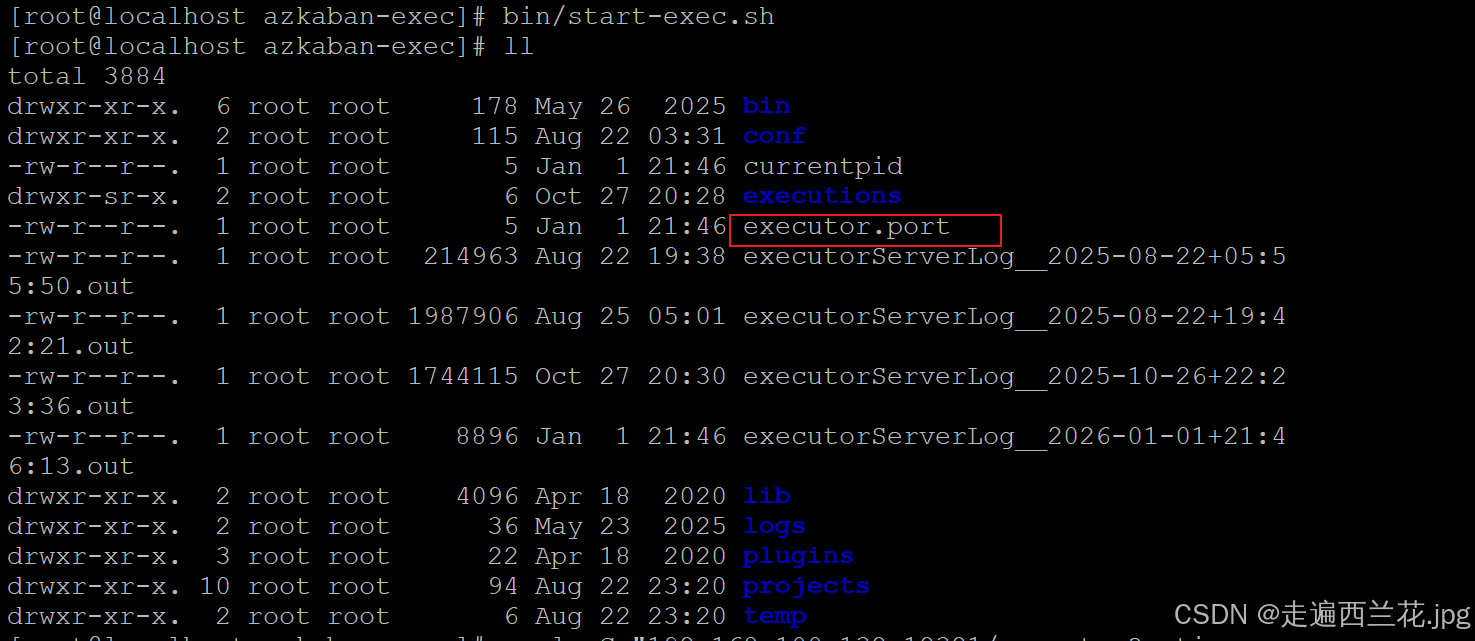 如果在/opt/module/azkaban/azkaban-exec目录下出现executor.port文件,说明 启动成功