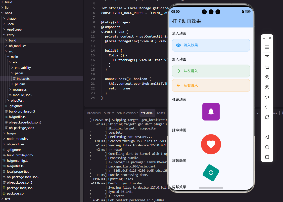 动画效果是提升应用体验的重要手段。在打卡工具类应用中,恰当的动画可以增强操作反馈、引导用户注意力、传达情感和成就感。本文将详细介绍如何在Flutter和OpenHarmony平台上实现各种实用的动画效果组件。