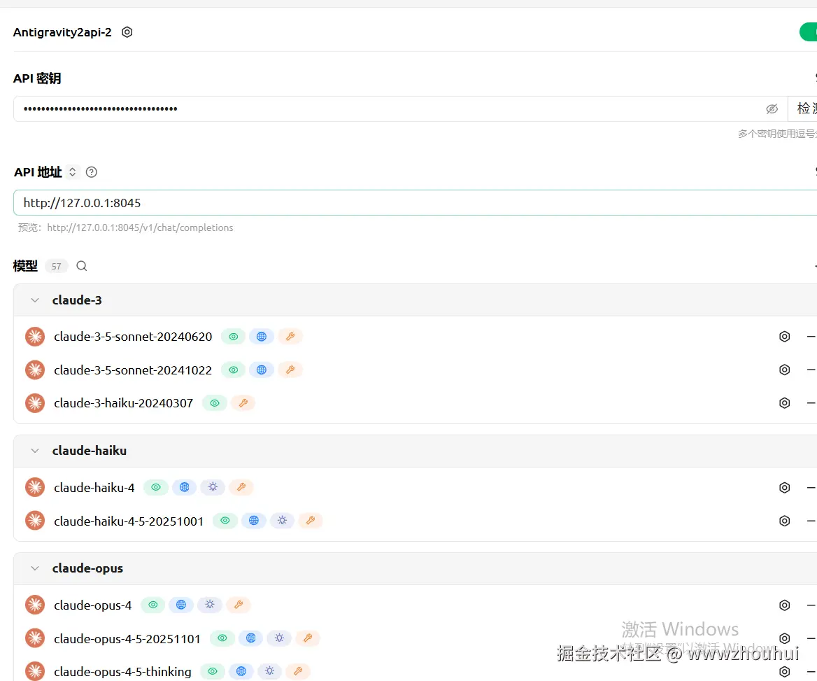 模型列表详细列举出Antigravity 支持的所有模型