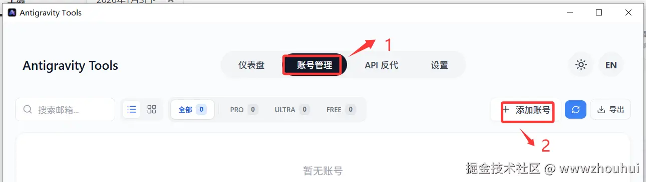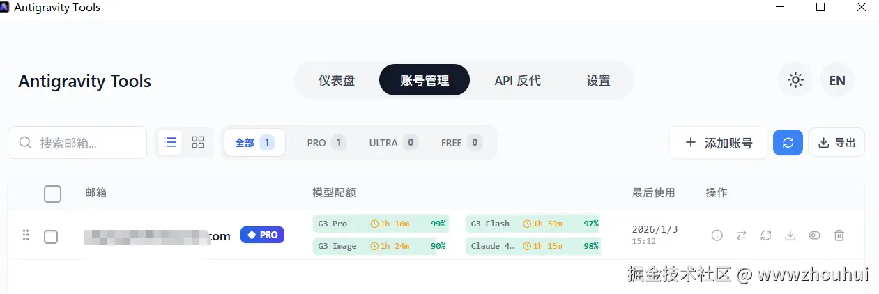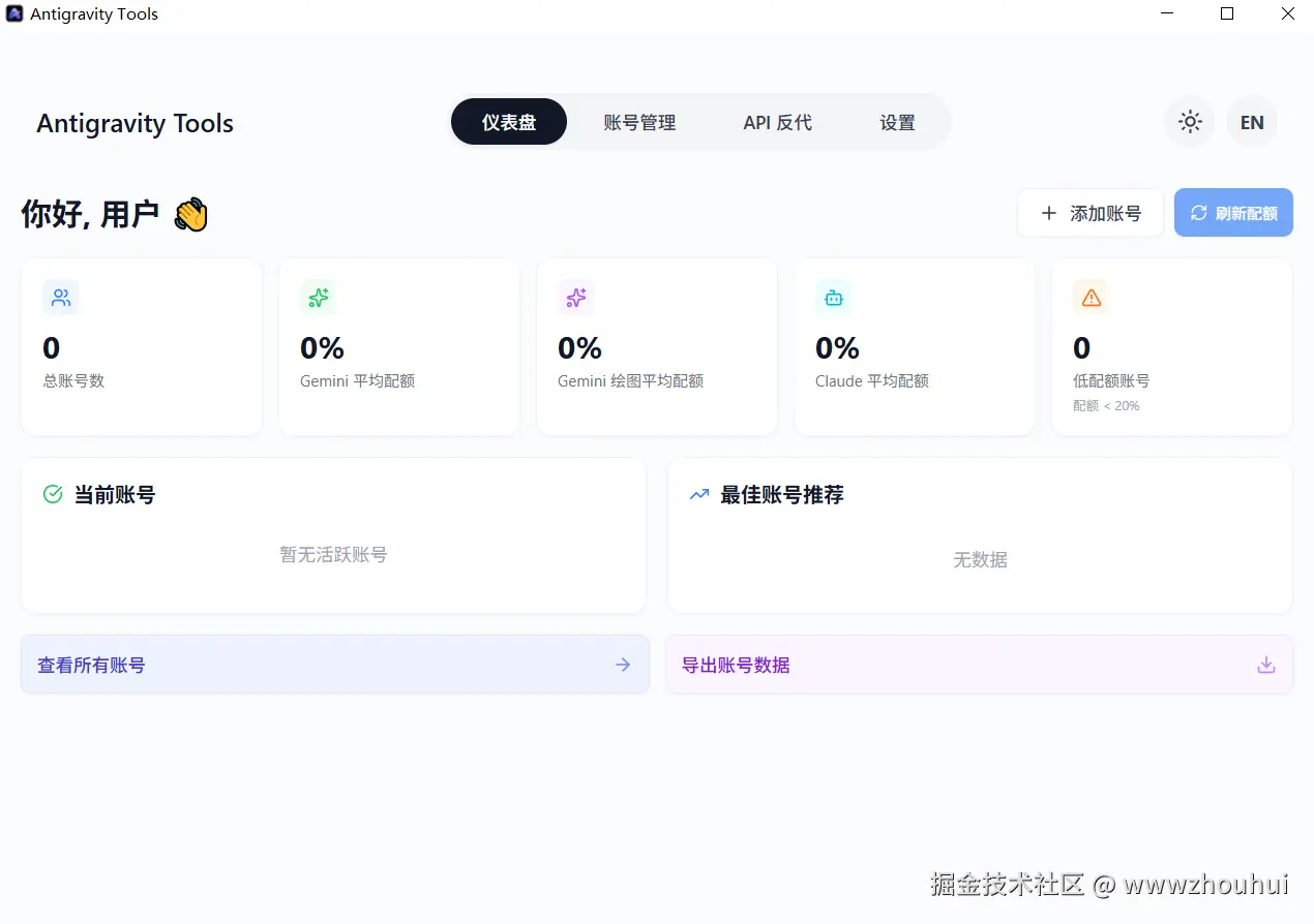 上面的截图就是刚刚安装好的Antigravity Tools 工具。