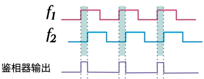 鉴相器输出根据相位的相位差做出输出,相位差越大,输出越大: