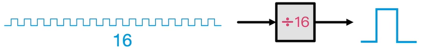 使用 N = 16 的分频器后,输入 16 个方波,分频器输出 1 个方波。