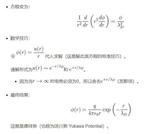 代入,就得到了著名的德拜势(汤川势):