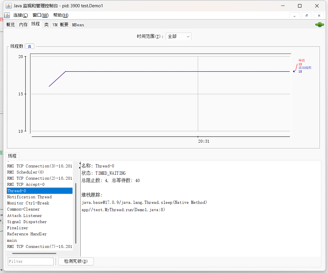 方法一和二我们都见过,方法三和四都是创建出名字,该名字可以随意取:中英文、符号等都可以。然后我们可以通过 jconsole.exe 第三方工具来查看,现在我们随便创建一个来展示一下:
