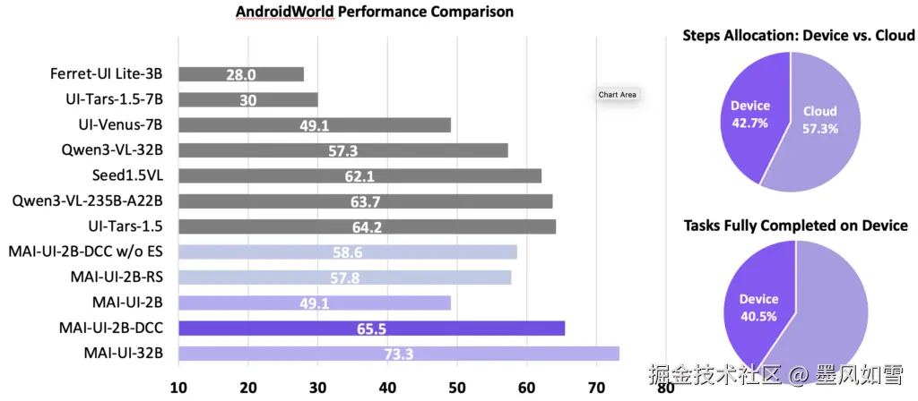 这一招"抄近道",把原本需要几十次点击、容易出错的流程,压缩成了几次精准的代码调用。在MobileWorld的测试中,这让它的成功率直接甩开了最好的竞争对手30多个百分点。