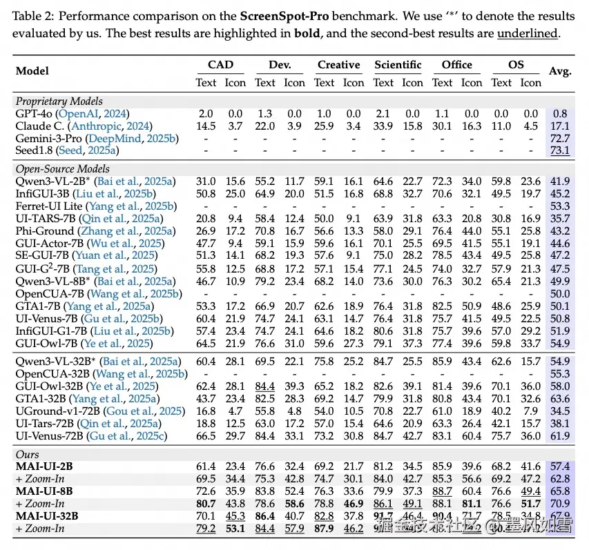 别光听概念,看看硬指标。在目前的GUI智能体竞技场上,MAI-UI的表现可以用"霸榜"来形容。