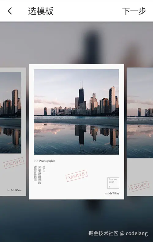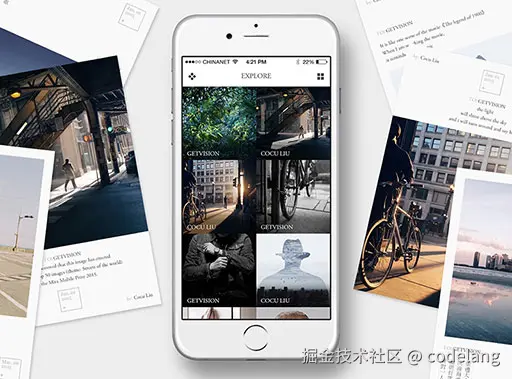 最近翻阅相册,旧旧的照片有一张独特的排版,思绪一下就把我拉回了从前,这张照片是《留白》App 编辑生成的,一款非常具有艺术感的 App。《留白》是我前司创始人开发的 App,当时用户量还挺多的,首页还会推荐一些摄影师拍摄的作品。