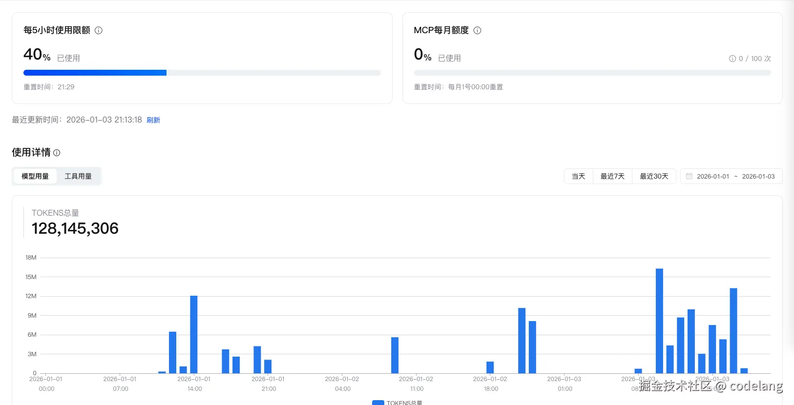 元旦这三天智谱的 tokens 消耗: