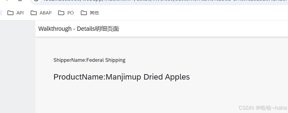 ObjectHeader页签修改属性intro 和title,页面显示invoice模型中的ShipperName和ProductName字段信息