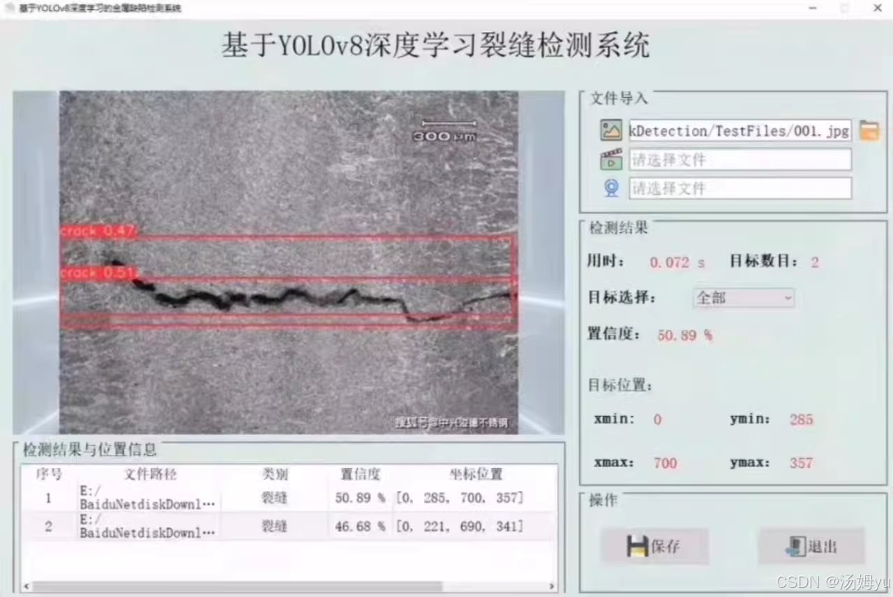 基于YOLOv8深度学习的裂缝检测系统研究具有重大且多维度的意义:在保障安全层面,它能快速精准识别裂缝位置与程度,助力"早发现、早处理",有效预防桥梁垮塌、建筑倒塌等灾难,保障基础设施长期安全运行与人民生命财产安全;于效率成本方面,该系统自动化处理图像,检测速度远超人工,还能借助移动设备实现非接触检测,大幅降低人力成本与安全风险;从技术融合角度,它将深度学习与计算机视觉深度融合,为类似目标检测任务提供范式,推动检测行业智能化转型,且轻量化模型支持边缘计算部署,助力智能监测设备研发;在可持续发展维度,及时修复裂缝可延缓结构劣化,系统提升检测精度与效率能避免"过度维修"或"维修不足",延长基础设施寿命、降低全生命周期成本,契合国家可持续发展战略,兼具经济与社会效益。
