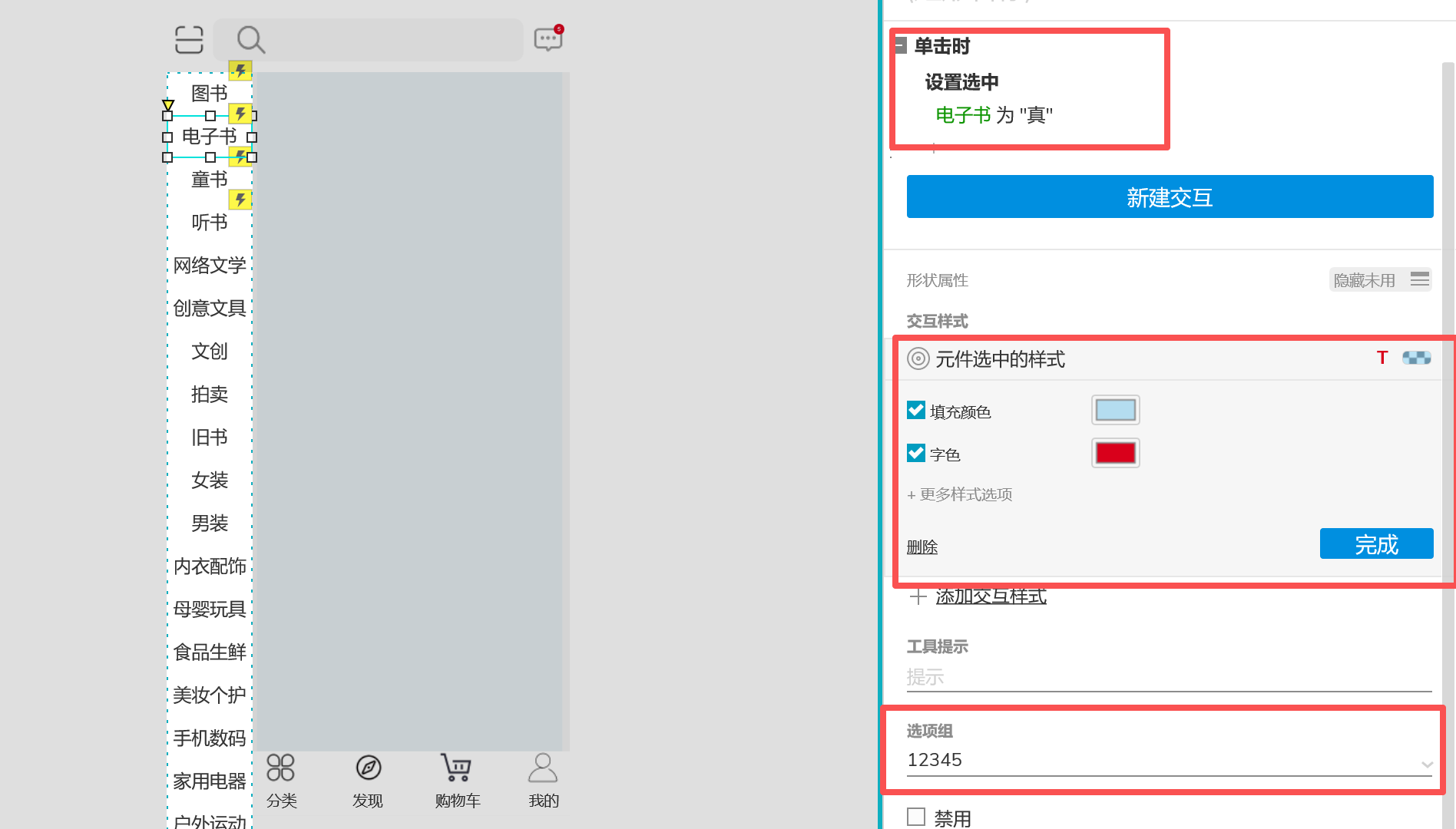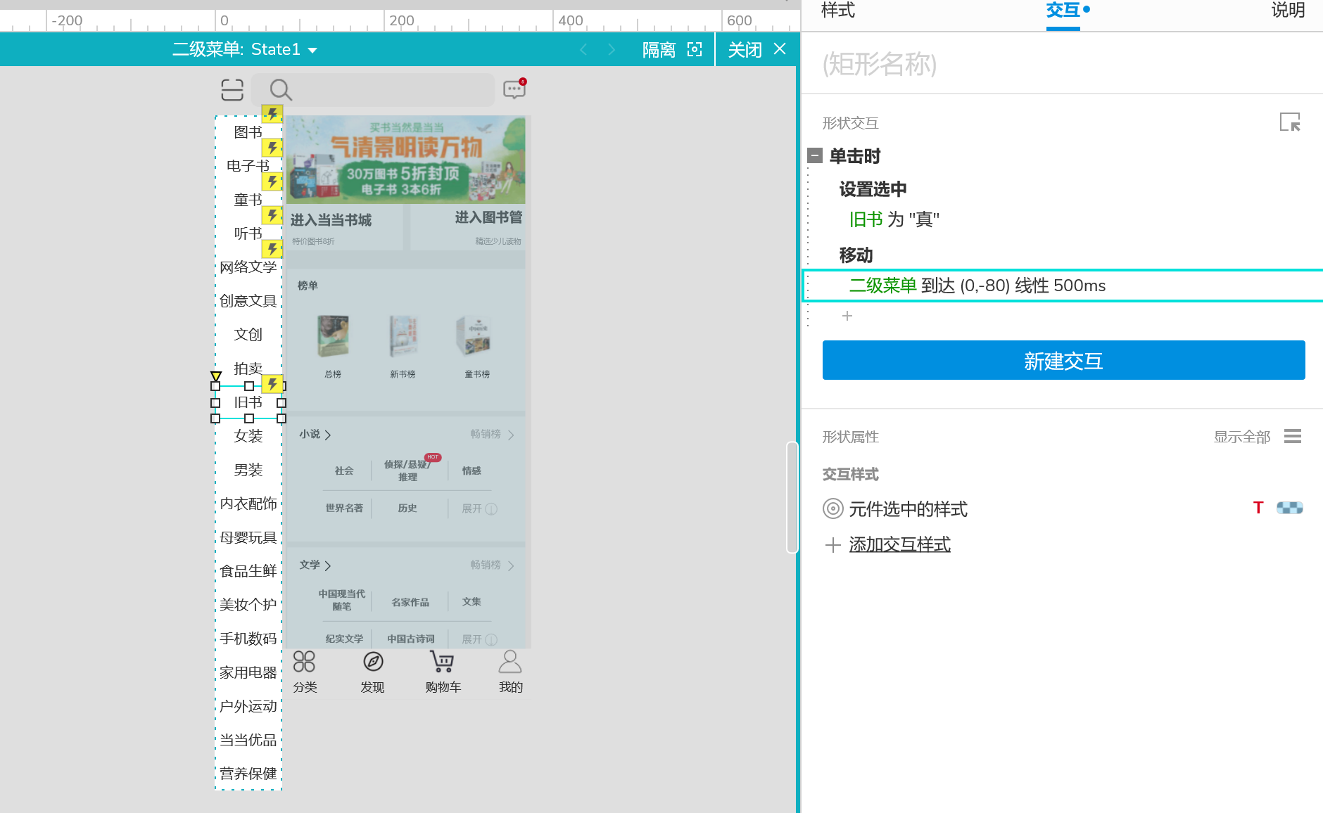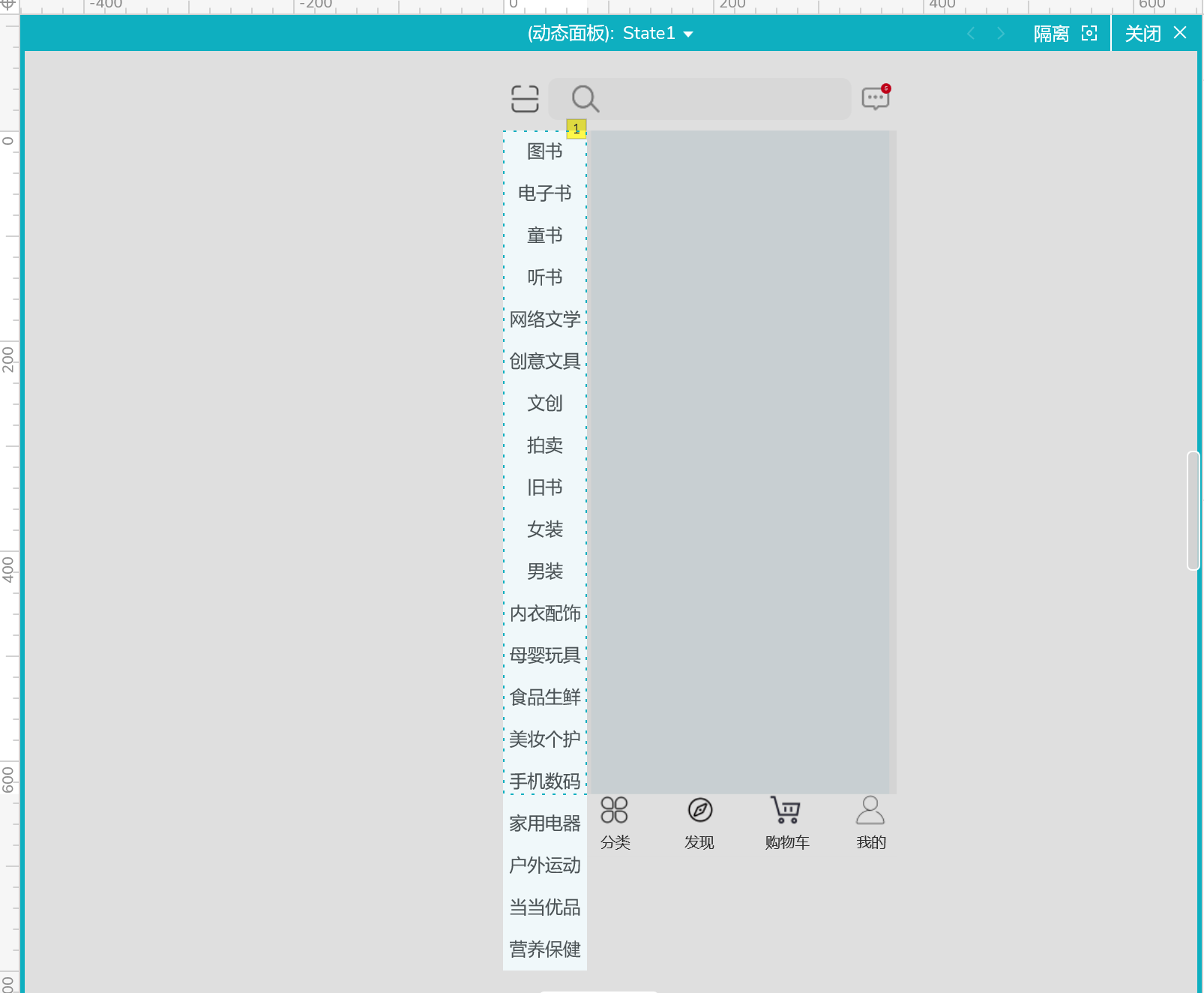 5、接下来制作内容动态面板,当点击图书时展示对应面板内容,都基础的操作不过多赘述。