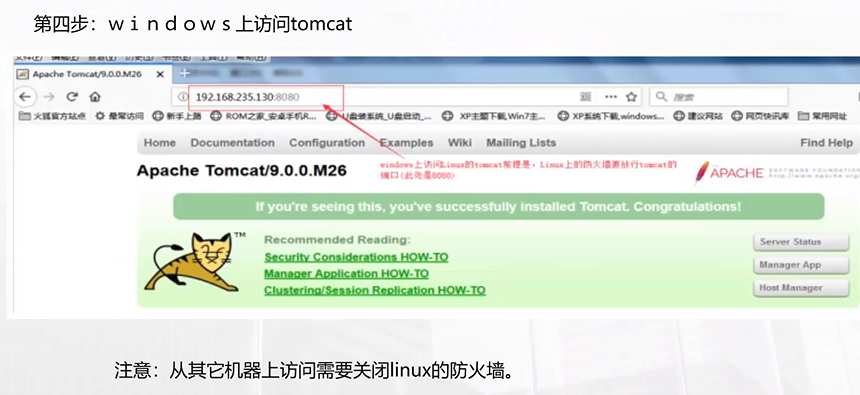 开启 tomcat 服务后,直接在 Windows 中 web 页访问 http://192.168.174.128:8080 页面打不开在转圈。说明此时不能访问,需要先设置 Linux 防火墙,允许其他计算机访问 tomcat 服务。