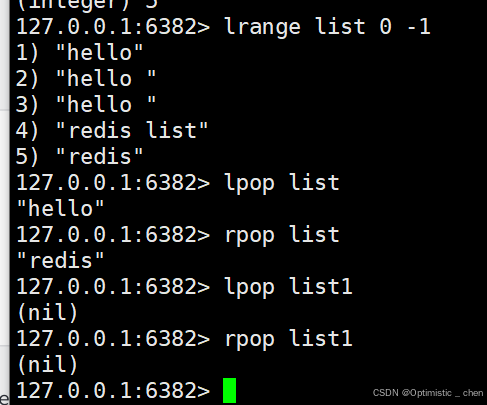 RPOP(尾删):从list 右侧取出元素(注意:不是删除元素,是从列表取出元素)